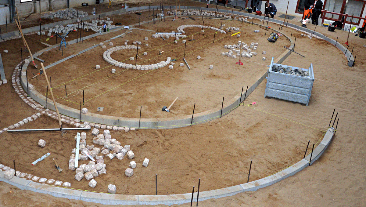 Die Rundlaufbahn wurde aus Naturstein 90-110 in unterschiedlichen Verbänden wie Passe, Segmentbogen, Reihe in Kreisbogen und Radialreihen hergestellt.